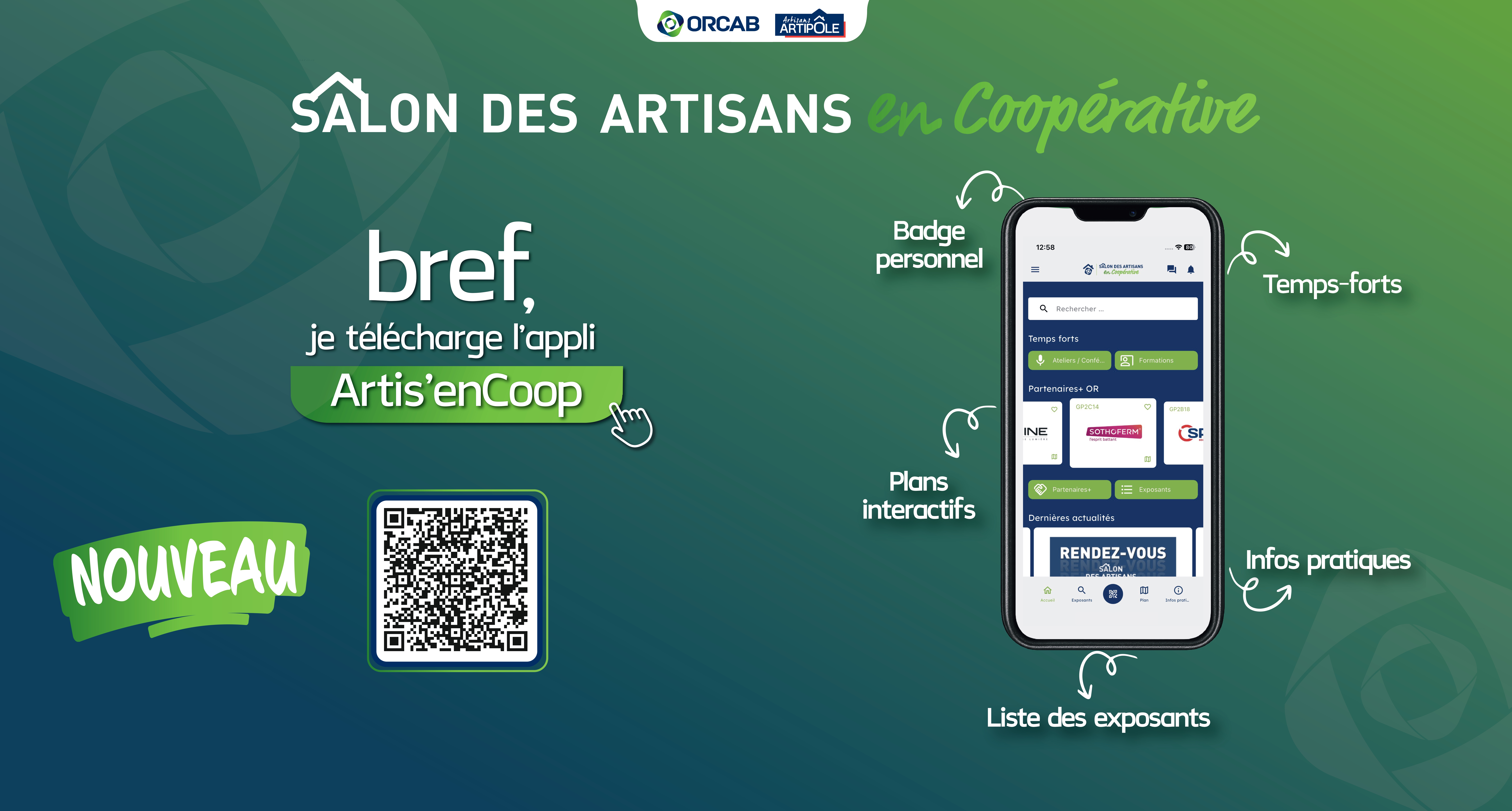 Une question sur l'accessibilité au salon, sur les horaires d'ouverture, sur les parkings ou pour tout autres sujets utiles ? Rendez-vous sur l'application Artis'enCoop ;)
